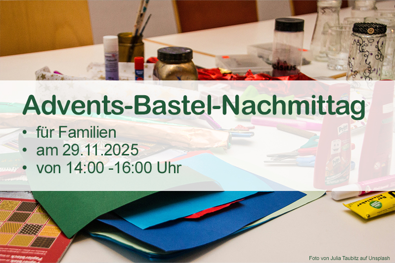 Gemeinsam können Eltern und Kinder an verschiedenen Stationen kreativ werden. Aus unterschiedlichen Materialien entstehen kleine Kunstwerke. Nebenbei kann man bei einem heißen Getränk und Plätzchen ins Gespräch kommen. Zur Kostendeckung wird um eine Spende gebeten.